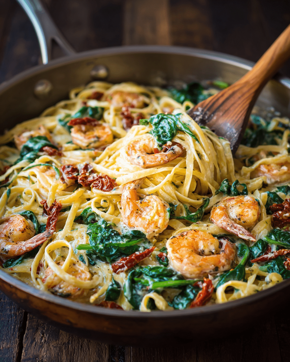 If you’re looking for a rich, flavorful pasta dish that feels like it came straight from a cozy Italian bistro, this Creamy Tuscan Shrimp Linguine is your answer. Juicy shrimp are nestled in a silky parmesan cream sauce, studded with sun-dried tomatoes, fresh spinach, and garlic—all tossed with tender linguine for the ultimate weeknight indulgence.